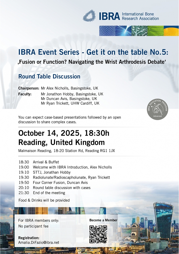 Alex Nicholls was invited to present at an evening event in London for the International Bone Research Association (IBRA) on complex wrist fractures.