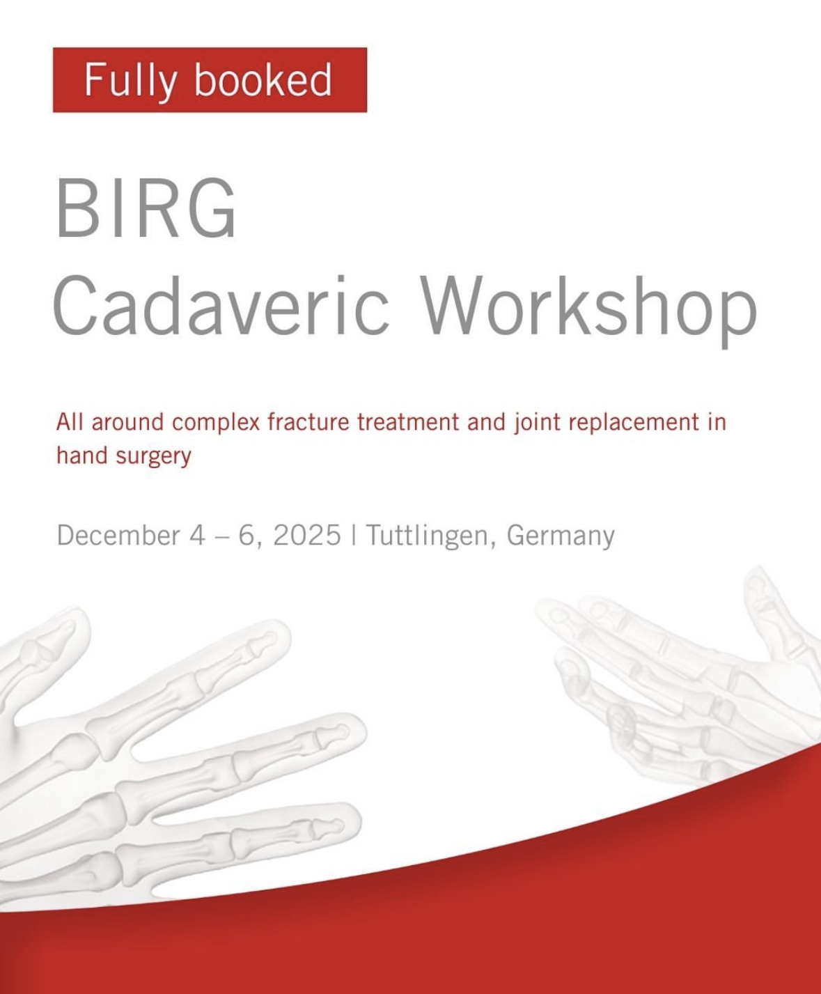 The whole team attended a three day workshop in Germany, hosted by the Bone and Implant Research Group (BIRG). There were a series of informative lectures followed by cadaveric sessions to use some of the latest fracture fixation and joint replacement products. Duncan Avis and Jonathan Hobby gave talks on topics including Finger Joint Replacement, 3D patient specific planning, Wrist fractures and Hand fractures.